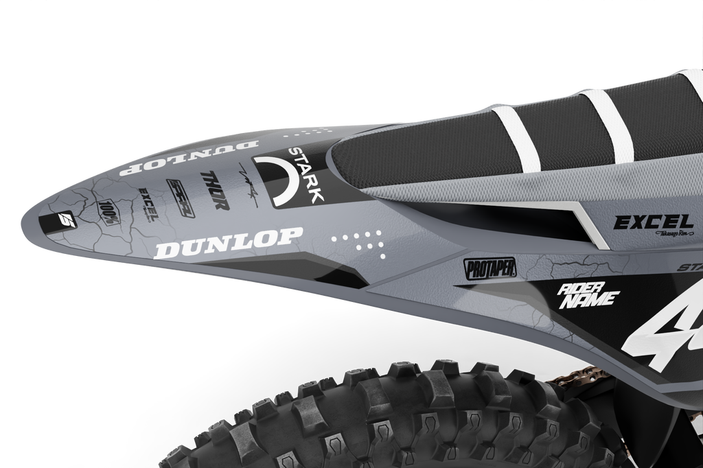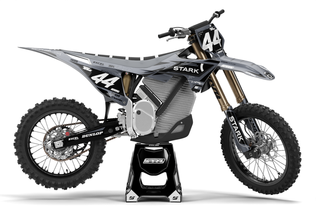 Stark Future // Podium Grey Motocross Graphics Kit made by SpiralGFX, Licensed by KTM, Husqvarna & Gas Gas and printed on the very best materials with high quality print equipment.